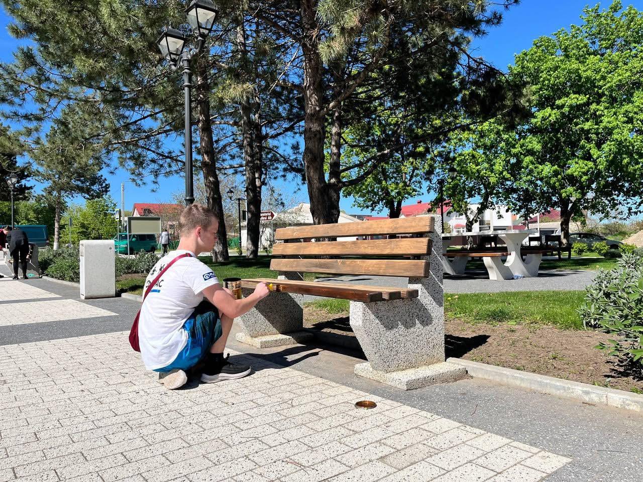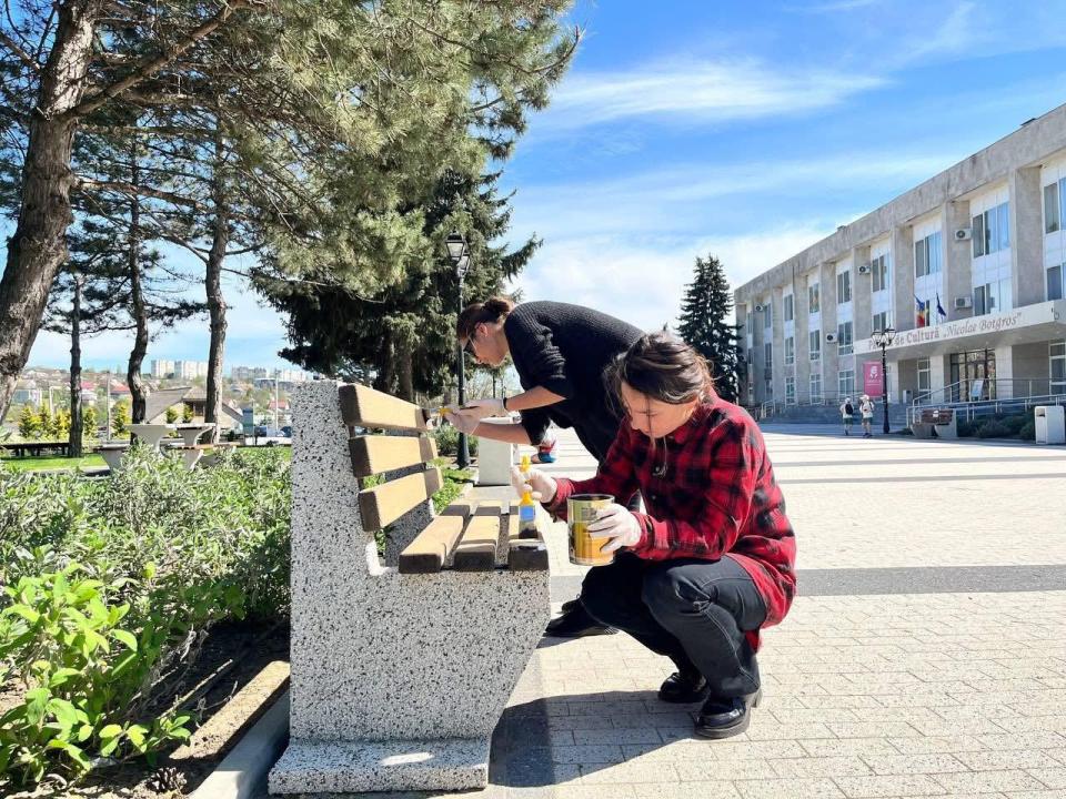 Voluntarii Centrului Municipal de Tineret Cahul au demarat lucrările de vopsire a băncilor din fața Palatului de Cultură „Nicolae Botgros”, contribuind la înfrumusețarea spațiului public și la crearea unui mediu mai plăcut pentru locuitorii municipiului.