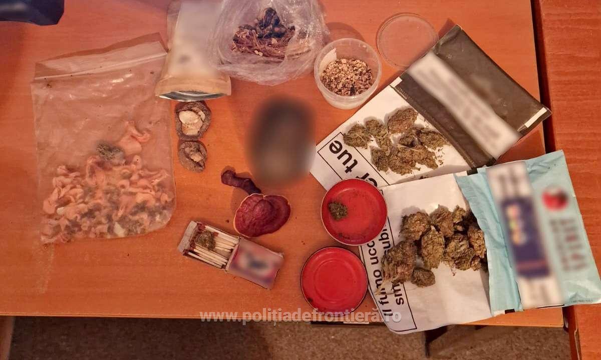 În baza profilului de risc, poliţişti de frontieră au solicitat lucrătorilor vamali efectuarea unui control amănunțit asupra mijlocului de transport și persoanelor, ocazie cu care a fost descoperită în compartimentul torpedou și bagajele personale (ascunse în diferite ambalaje pentru a nu fi descoperite) o substanță vegetală de culoare verde-oliv, cu miros înțepător, substanţă susceptibilă a face parte din categoria drogurilor de risc (cannabis), în greutatea de aproximativ 20 de grame și aproximativ 80 de grame de ciuperci halucinogene.