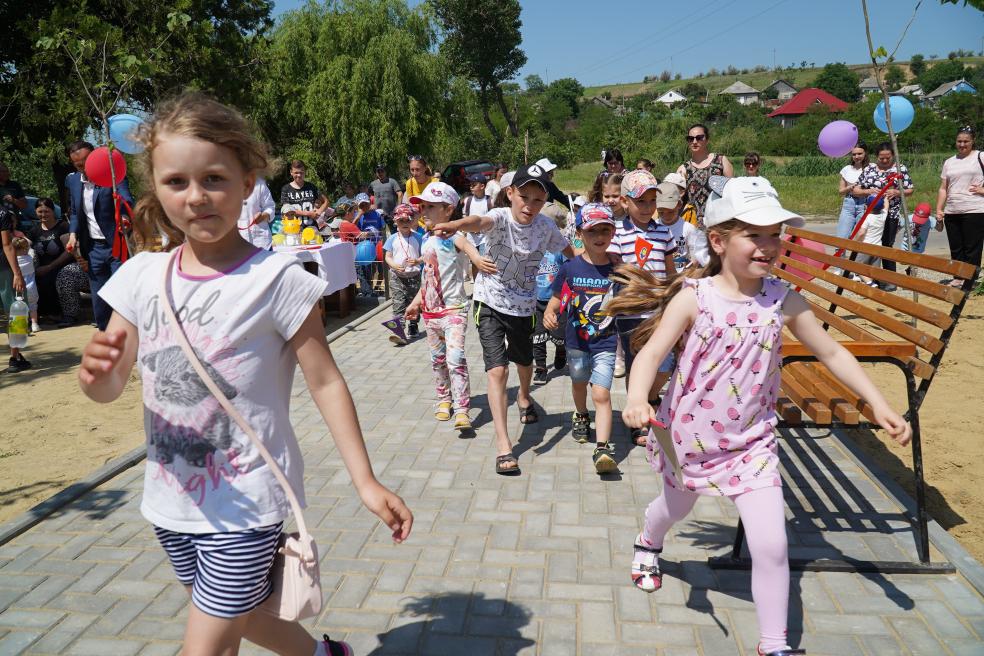 Banii au fost utilizați pentru a achiziționa utilajul terenului de joacă pentru copii și a instala câteva bănci.