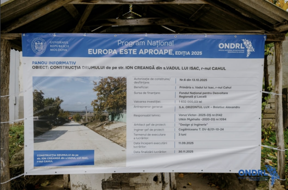 Locuitorii satului Vadul lui Isac, raionul Cahul, beneficiază de un tronson de drum local modernizat, iar în perioada următoare vor avea acces și la apă potabilă la robinet. Investițiile sunt realizate prin Programele Naționale „Europa este aproape” și „Satul European”, ediția a II-a, cu finanțare din bugetul de stat, prin Fondul Național pentru Dezvoltare Regională și Locală (FNDRL).