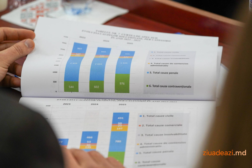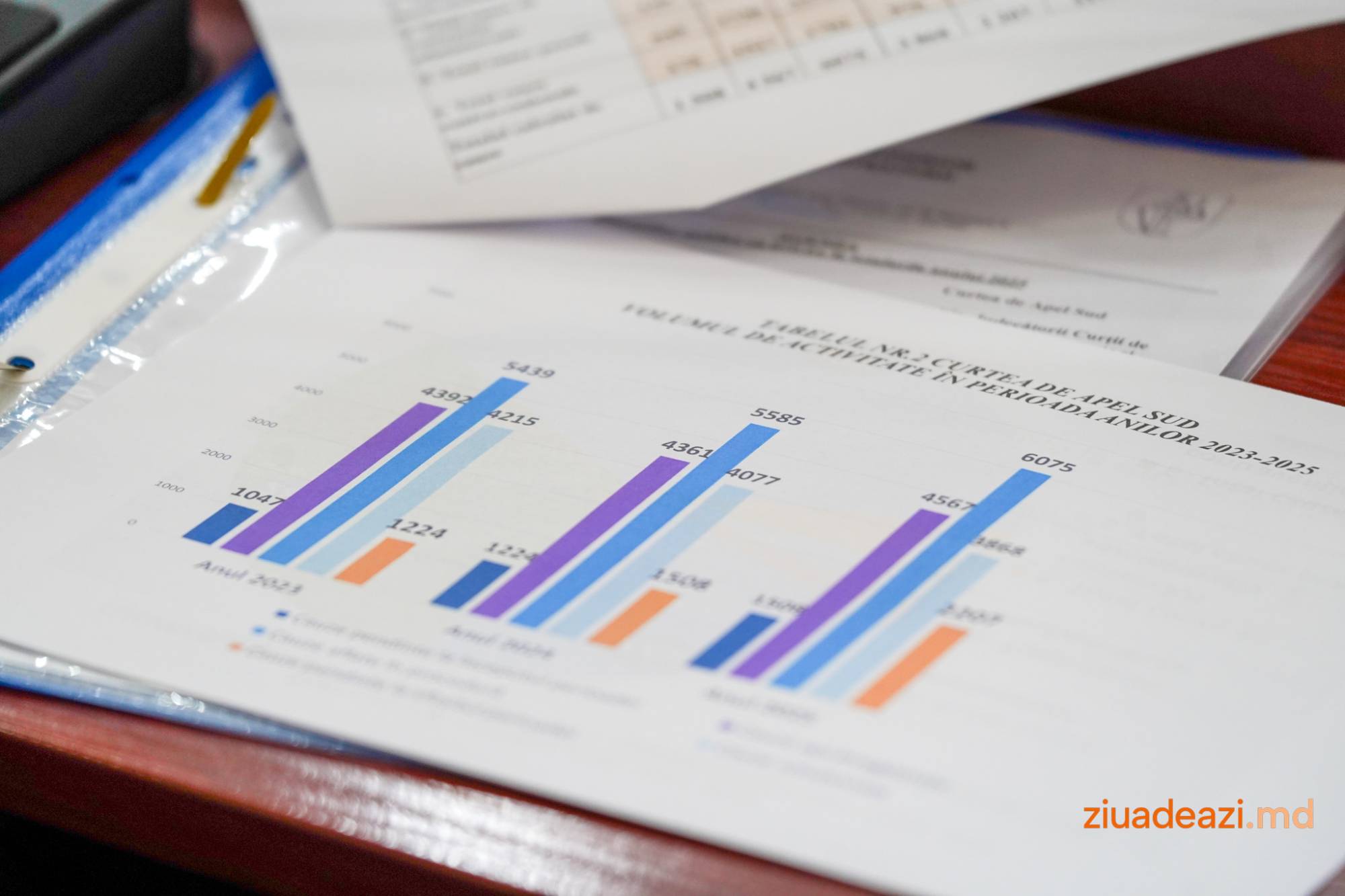 În cadrul ședinței a fost raportată de asemenea și activitatea Judecătoriei Cahul pe parcursul anului 2025. Datele statistice comparativ cu anul 2024 în general pot fi reprezentate de următoarele cifre: