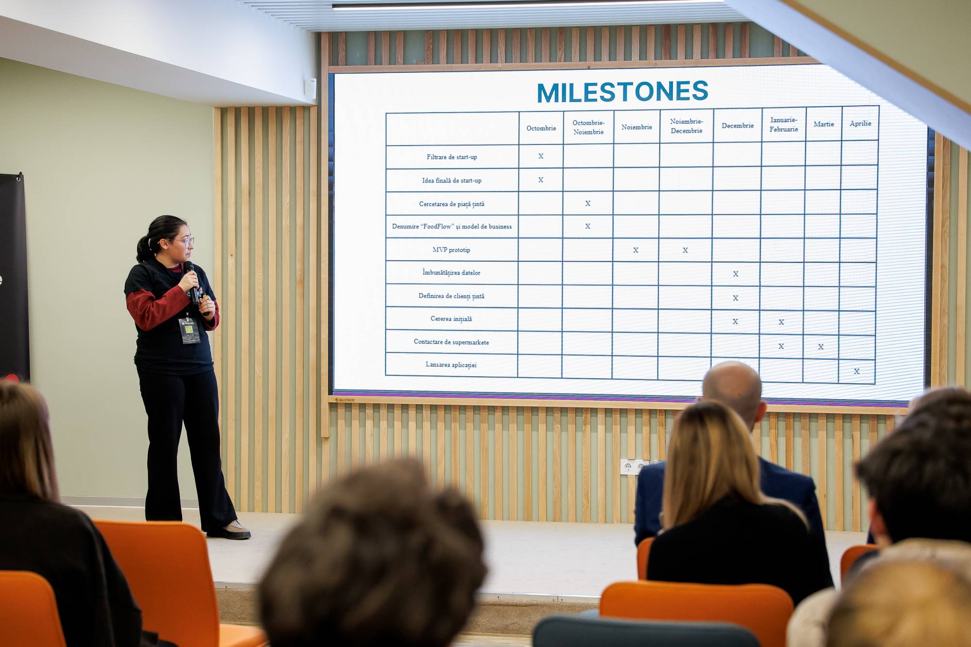 În cadrul programului, participanții au lucrat alături de mentori și fondatori de startup, parcurgând etape precum identificarea unei probleme reale, validarea soluțiilor și structurarea unui concept de startup.