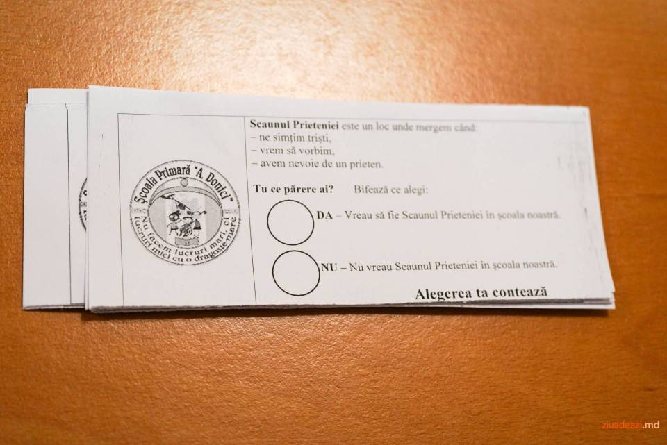 Сегодня, 30 января 2026 года, начальная школа «Александру Донич» в муниципии Кагул превратилась в настоящий избирательный участок. Ученики I–IV классов приняли участие в необычном образовательном упражнении — симуляции реального избирательного процесса, в рамках которого им предложили принять решение по инициативе, связанной с эмоциональным благополучием в школе: внедрению «Стульчика дружбы».