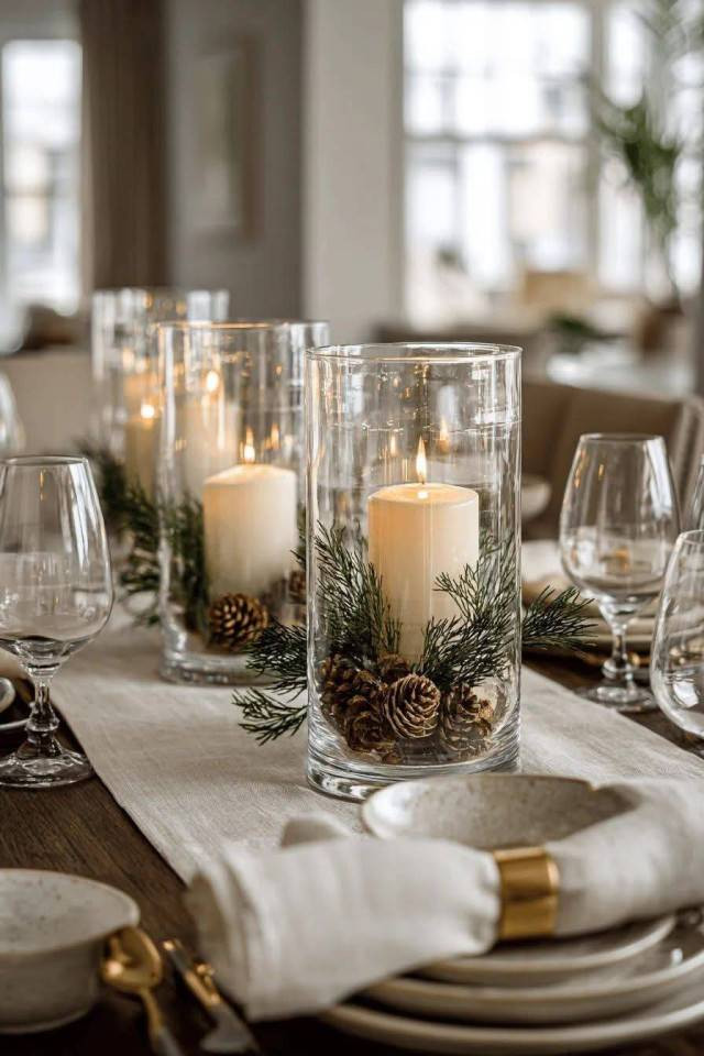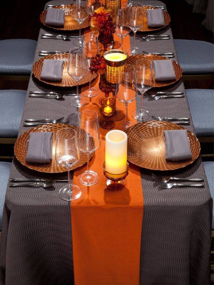 - Основные цвета: красный, оранжевый, золотой — в скатертях, салфетках и свечах.