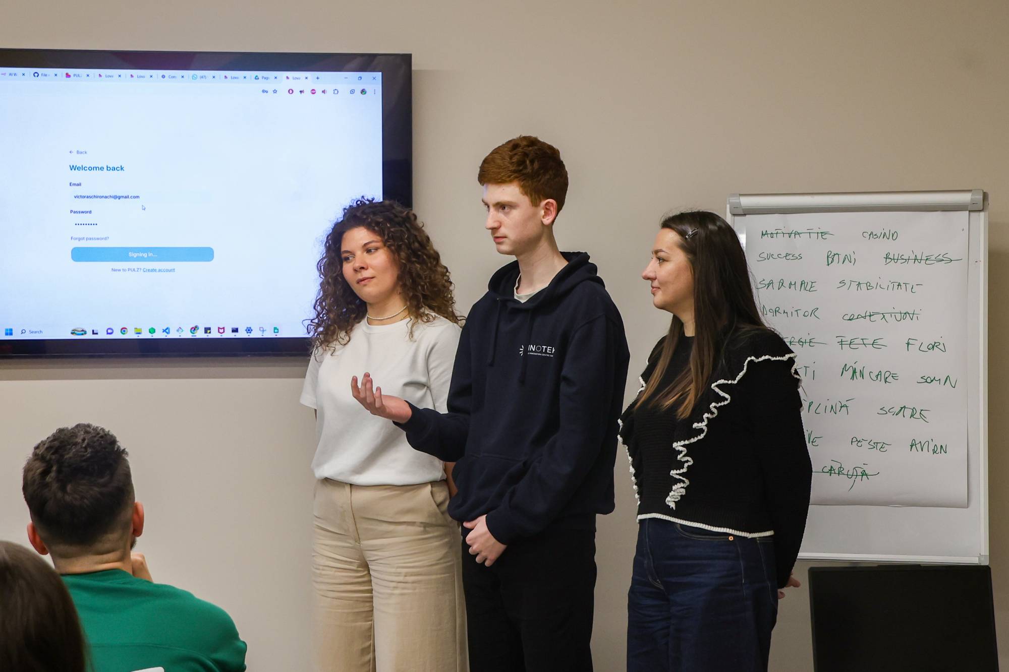 „Mi se pare extraordinar că o idee care a pornit dintr-o nevoie atât de profundă și personală a ajuns să atingă, în primul rând, colegii mei, și apoi mentorii. A fost un «wow» pentru mine. Am intrat în acest curs cu speranța că voi învăța câteva lucruri tehnice de bază, măcar cât să înțeleg ce înseamnă să construiești o aplicație. Ce s-a întâmplat a fost de nenumărate ori mai mult. Echipa s-a format aleatoriu, dar atât de organic. Dumitru și Victor au venit exact cu acel drive și cu încrederea pe care eu o pierdusem după săptămâni în care am tot întors ideea pe toate părțile. Au avut și un aport tehnic imens și, sincer, am fost foarte impresionată de ei. Jasmin, o veche cunoștință, a venit cu acel touch de creativitate de care aveam nevoie și pe care îl lăsasem pe plan secund. Cel mai dificil pentru mine a fost să ies din rolul de «non-tehnic». Nu mi-aș fi imaginat vreodată că, după câteva zile de hackathon, voi înțelege concepte precum consolă, API, debugging sau sintaxă. Nu doar că le-am înțeles, le-am și folosit. Mentorii au avut un rol foarte important. Ne-au ajutat să simplificăm, să ne întoarcem la esență și să construim ceva cu sens, nu doar ceva «interesant».” — Mihaela Culin, reprezentanta echipei PulZ