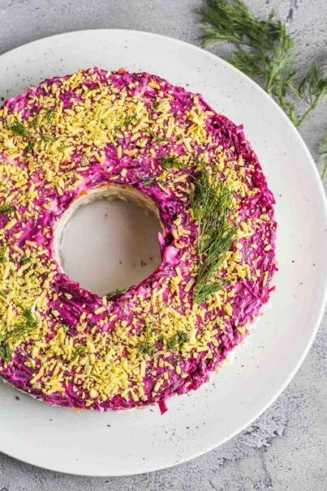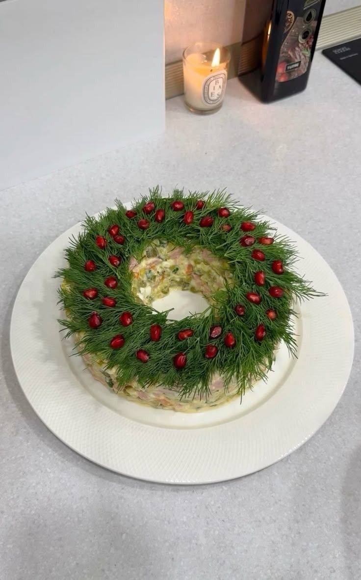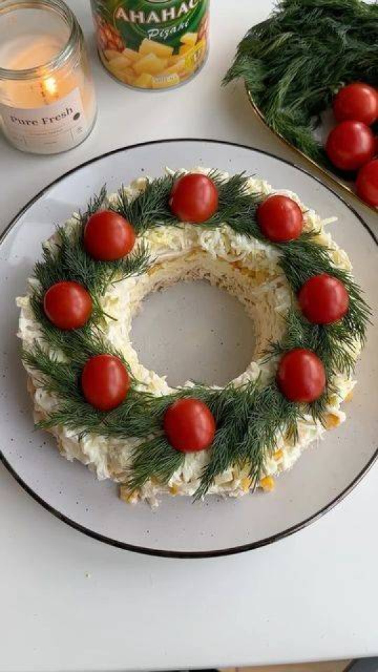 Pentru a obține acea formă rotundă cu gol în mijloc, poți folosi un pahar așezat cu gura în jos, chiar în centrul farfuriei. Aranjează salata în jurul paharului, presând ușor compoziția. După ce ai terminat, scoate cu grijă paharul, iar în mijloc va rămâne un spațiu perfect rotund, ideal pentru decor.