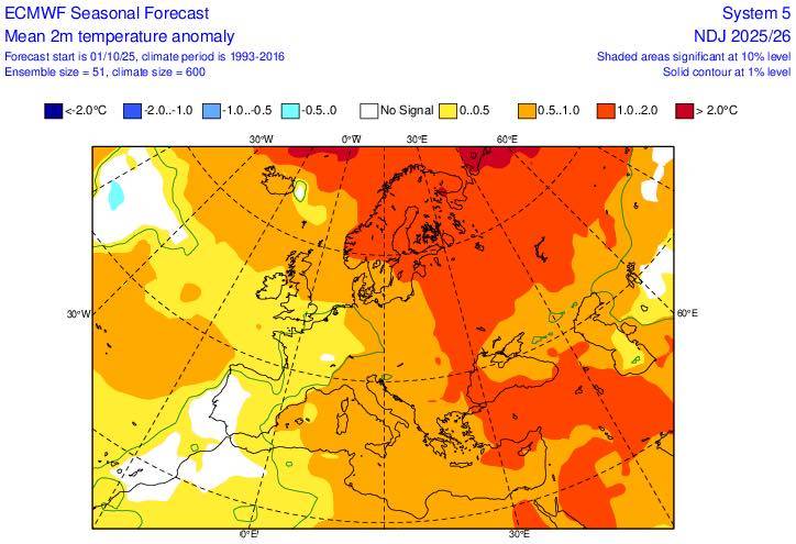Temperatura medie lunară, calculată din valorile înregistrate pe timp de zi și de noapte, va oscila între +3 și +5 grade Celsius, iar cantitatea de precipitații prognozată este de 25–45 milimetri, sub media obișnuită pentru această perioadă.
