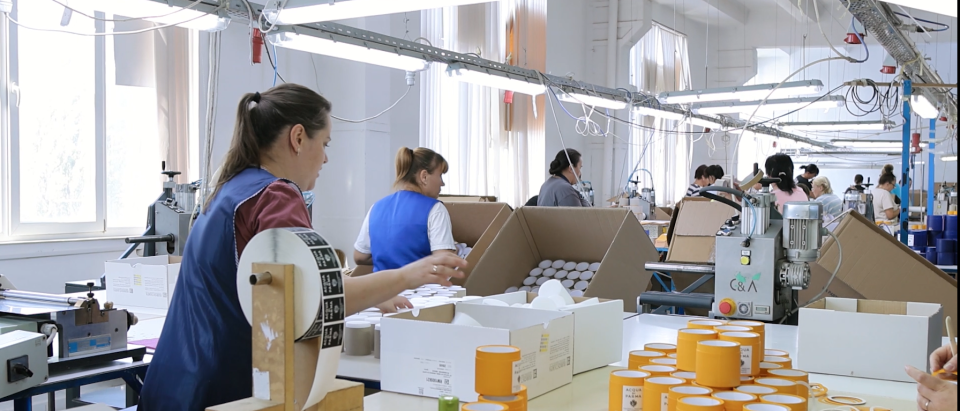 Lucia, una dintre primele angajate, confirmă cu mândrie: „Lucrez aici din 2014. Îmi place ceea ce fac și sunt mândră când văd cutiile noastre pe rafturile din magazine. Le spun prietenilor mei: uitați, astea sunt cutiile făcute de noi”.